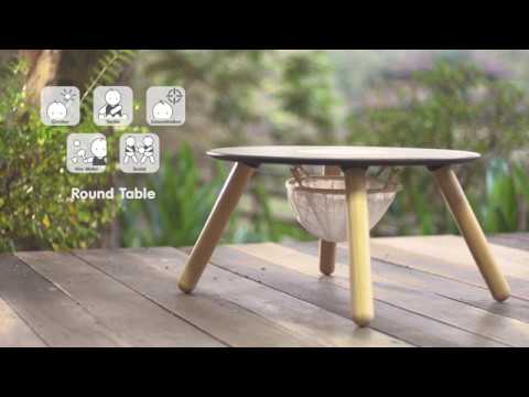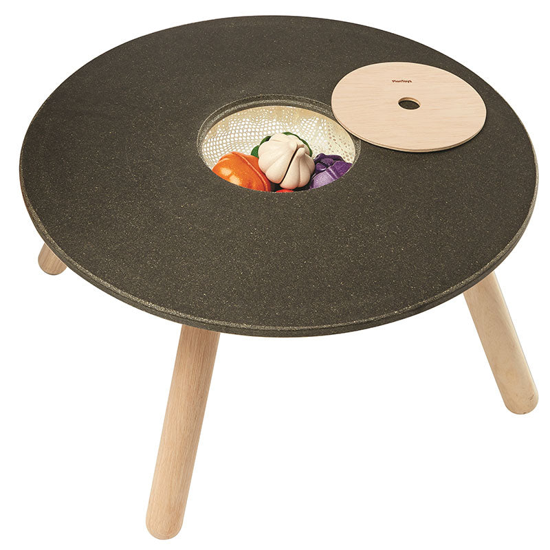 Tavolo Tondo in Legno con Lavagna e Sacca Portagiochi