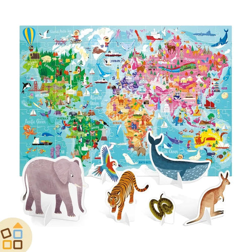 Puzzle Headu World Tour, Mappa del Mondo con Animali