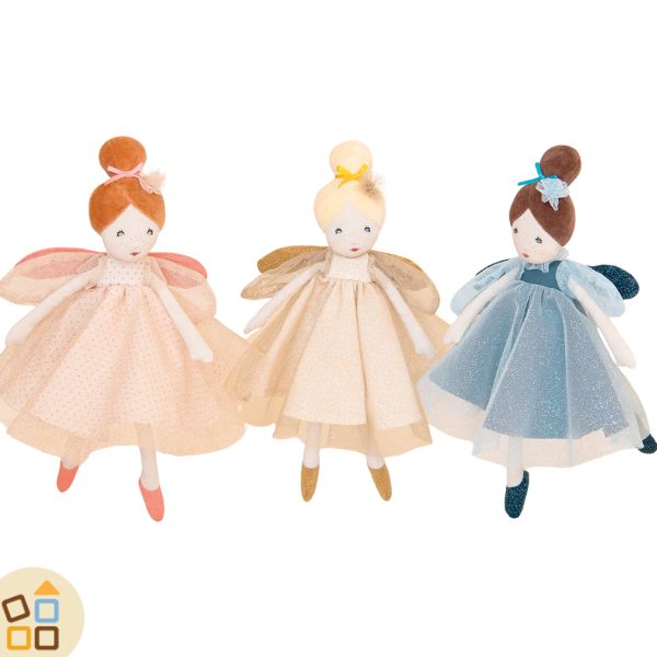 Dalla creatività di Elodie Coudray nascono queste bellissime fatine con ali glitterate, gli abiti raffinati e scintillanti, i capelli, in velluto, raccolti da un nastrino e scarpine in tessuto luccicante