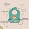 Grazie ai fori regolabili lungo il colletto, il bavaglino cresce con il bambino, offrendo una vestibilità comoda e sicura a ogni età.È resistente, facile da pulire e lavabile in lavastoviglie, garantendo praticità e igiene.