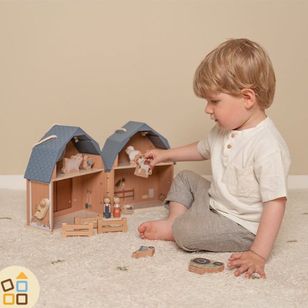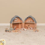 La fattoria si apre a metà e si può iniziare a giocare: con tutte queste figure da gioco in legno, i bambini potranno creare creare la propria storia, stimolando il suo pensiero creativo e la fantasia