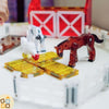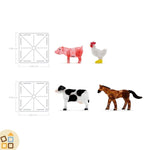 - Contenuto: 25 pezzi (4 animali, 4 quadrati, 3 rettangoli, 2 grandi rettangoli, 2 triangoli rettangoli, 10 recinzioni)