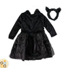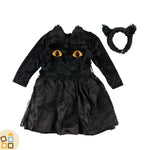 A completare il travestimento un'adorabile e morbidissima coda in velluto nero cucita sul retro e un cerchietto peloso con due orecchie nere cucite sopra! -