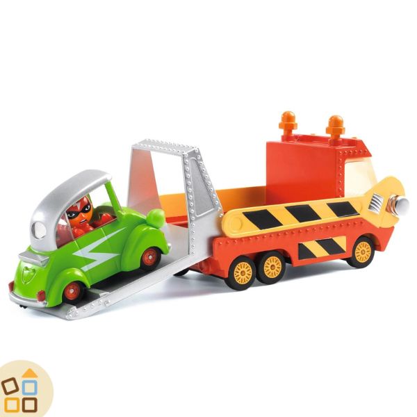 Il carro attrezzi Crazy truck corre a soccorrere tutte le auto in panne! Solido e imponente, rintraccia il veicolo in panne sulla sua piattaforma scorrevole e lo trasporta in garage il prima possibile per ripararlo. Assolutamente indispensabile!