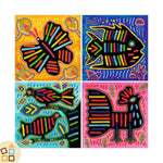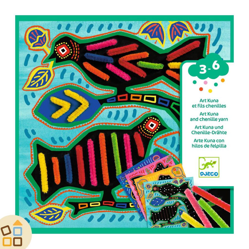 Scopri l’arte dell’infilatura con questa originale attività manuale! I bambini possono creare 4 splendidi dipinti colorati, ispirati all'arte Kuna del Sud America, utilizzando fili di ciniglia di diverse dimensioni e colori. Seguendo il libretto illustrato, semplice e intuitivo, faranno passare i fili attraverso i grandi fori delle schede, trasformandole in opere d’arte uniche.