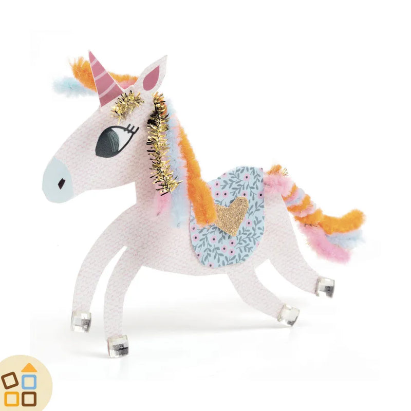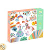 Questo kit creativo è un vero scrigno di ispirazione pensato per bambini dai 4 anni in su: all’interno di una capiente scatola a due piani trovano spazio perline, pompon, occhi mobili, adesivi, pietre preziose e filati di ciniglia, insieme a tutto il necessario per incollare, assemblare e tagliare liberamente.