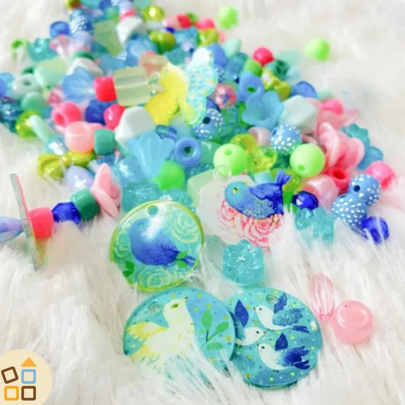 Contenuto: 250 perline in acrilico, 6 ciondoli e 1 filo elastico da 6 mtr