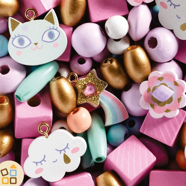 Questo kit creativo include già tutto l'occorrente: tante perline colorate in legno e cordini colorati. Sarà davvero entusiasmante creare tantissime collane e braccialetti personalizzati sempre diversi.