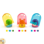 I personaggi sono nei colori primari, ma scambiando le campane, il bambino creerà nuovi colori grazie alla loro trasparenza: scoprirà così come mescolare i colori!