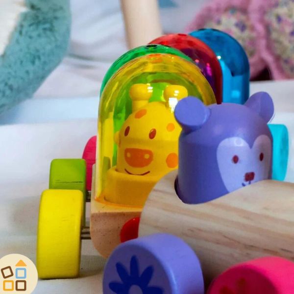 Cosa regalare a un bambino di 1 anno? Questo giocattolo non è solo un treno in legno da trainare, ma anche un gioco che permette ai bambini di esperenziare i colori e come si mescolano