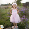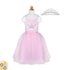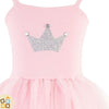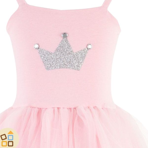 Questo set in due pezzi presenta un bellissimo abito in tulle rosa scintillante, con l'emblema della corona principessa termosaldata impreziosito da gemme