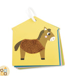 Realizzate in cartone rinforzato, queste carte presentano grandi aree con superfici diverse, ideali per le piccole mani curiose. Ogni carta misura 15,9 x 18,4 cm, rendendola facile da afferrare, e sono collegate da un anello removibile per portarle ovunque senza perderle.
