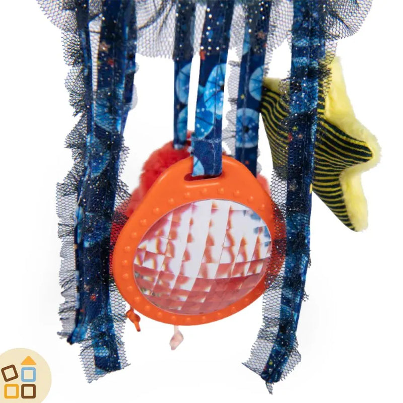 Cerchi un regalo per un neonato di pochi mesi? Tra le alghe danzanti si nasconde una graziosa medusa dai colori iridescenti, perfetta per essere coccolata o appesa.