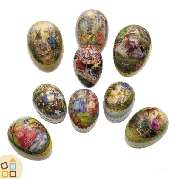 Realizzate a mano, queste bellissime uova di robusto cartone sono finemente decorate, perfette da personalizzare con una sorpresa a piacimento