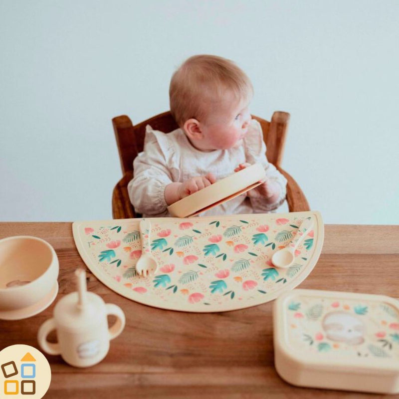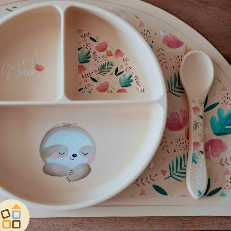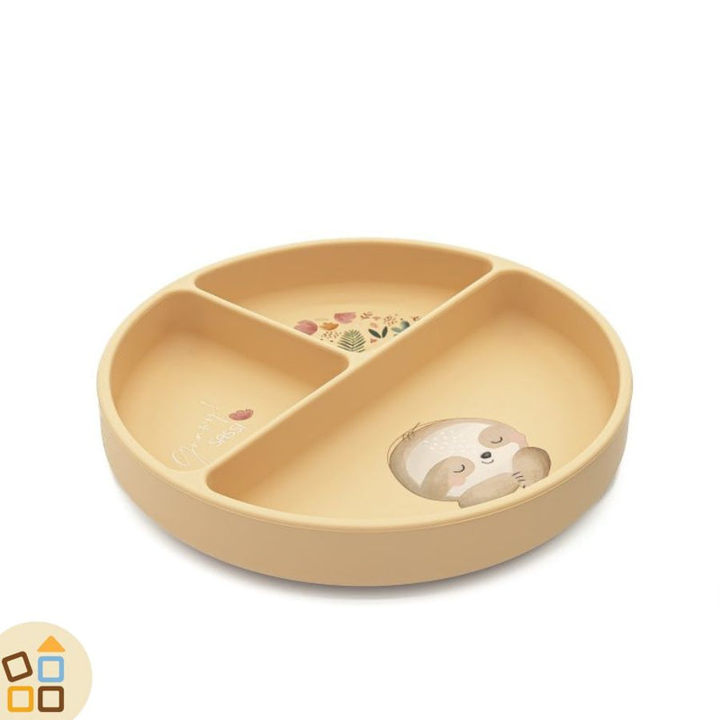 Cerchi un piatto per bambini? Adorerai questo tenero piatto per lo svezzamento decorato con l'adorabile bradipo Gnawy.