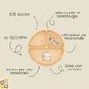 Sul fondo ha una pratica e forte ventosa sul fondo, così da assicurare il piatto al piano per evitare che i bambini lo lancino terra!