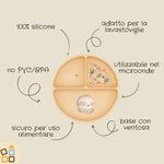 Realizzato al 100% in sicuro silicone alimentare, privo di PVC e BPA, ha 3 divisori per le pietanze.