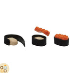 - Contenuto: 5 pezzi di sushi, 1 bottiglia di salsa, 1 piattino per salsa, 1 vassoio sushi. I pezzi possono essere ricomposti con il velcro