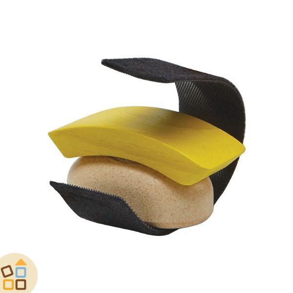Realizzato in legno da sottoprodotti dell’albero della gomma, materiali derivati dagli scarti di produzione di altre industrie riciclati per contribuire alla salvaguardia dell'ambiente; i colori utilizzati sono a base d’acqua e pigmenti organici, ecosostenibili e sicuri, senza piombo o metalli pesanti