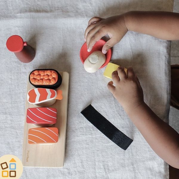 Il set Sushi Plan Toys è un gioco ideale per stimolare il linguaggio e la curiosità dei bambini e incentivare l'utilizzo di vocaboli nuovi