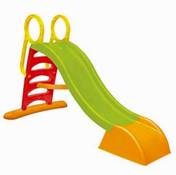 Questo scivolo per bambini ha due grandi maniglie per agevolare il bambino nella seduta, il grande supporto alla base della scala garantisce stabilità.