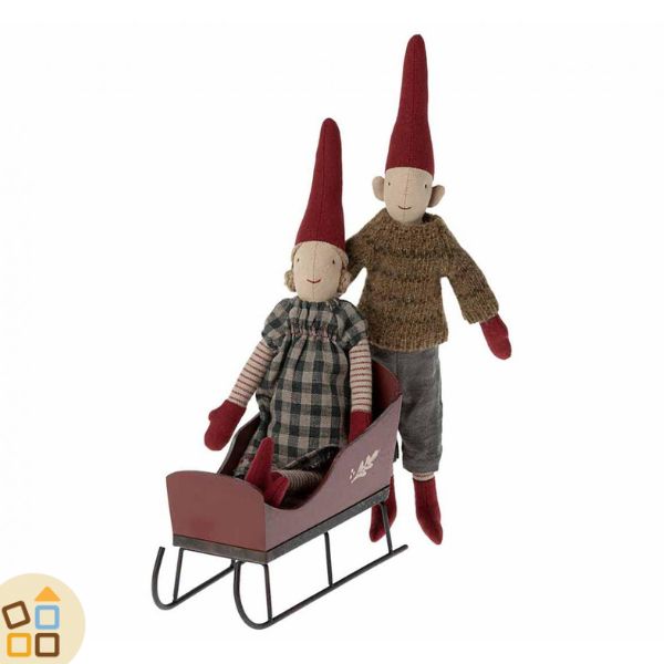 Un'adorabile slitta di Natale con un caldo e comodo materasso per mantenere i passeggeri caldi e durante il viaggioRealizzata in legno e metallo, la slitta si adatta perfettamente agli amici e ai topolini più piccoliHa bellissimi dettagli dipinti a mano, possono quindi verificarsi delle piccole variazioni(personaggi venduti separatamente)