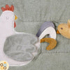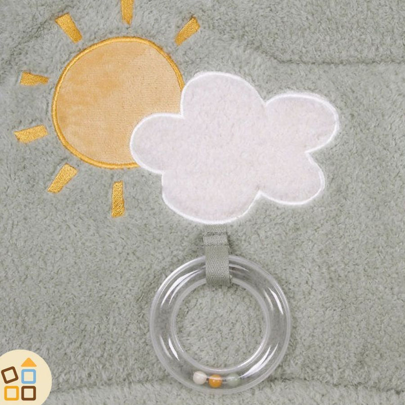 Morbidissimo da poterci fare anche lunghi sonnellini, è perfetto per giocare scoprire tante cose: l'ala del polletto scricchiola, le nuvole sono di morbido peluche e ci sono tante etichette da tirare