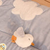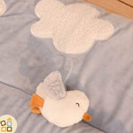 Morbidissimo da poterci fare anche lunghi sonnellini, è perfetto per giocare scoprire tante cose: l'ala del polletto scricchiola, le nuvole sono di morbido peluche e ci sono tante etichette da tirare