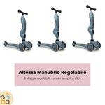 Consente al bambino di migliorare l'equilibrio avvicinandolo al mondo delle bici in modo divertente, combinando la funzionalità di due prodotti in uno: l'altezza del manubrio è regolabile adattandosi all'età del bambino