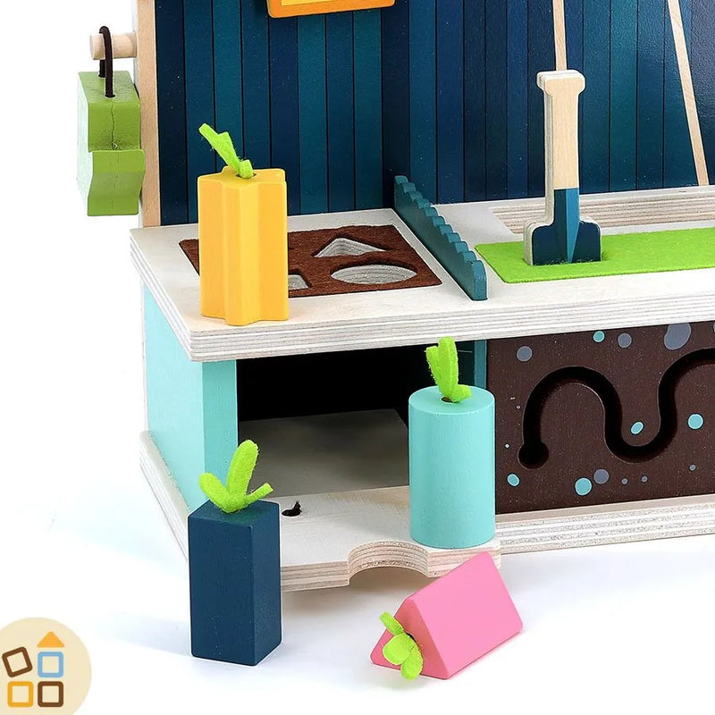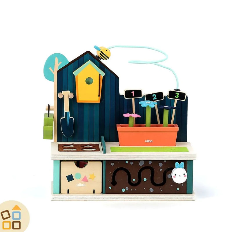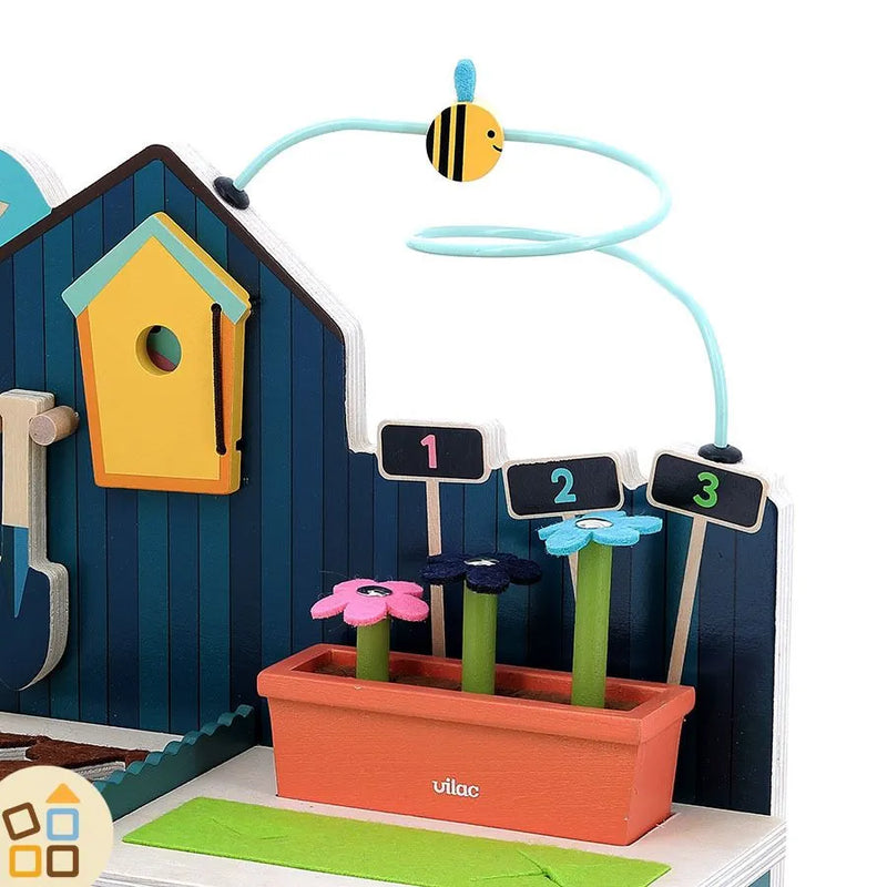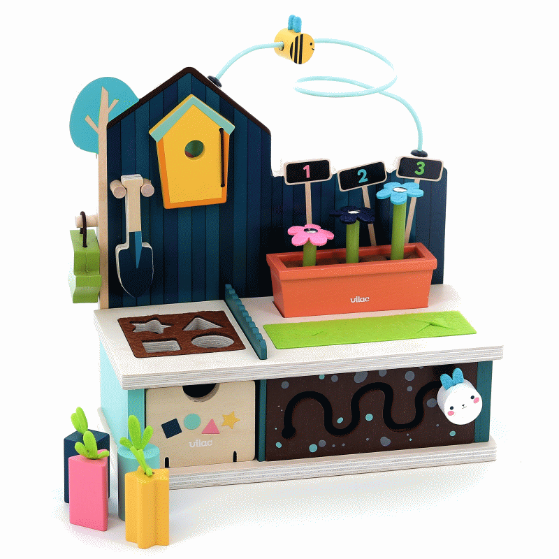 Con carote da raccogliere, fiori, un simpatico coniglio e le api che conversano, questo giocattolo offre ore di gioco interattivo e creativo.Realizzato in resistente legno, è progettato per durare e accompagnare il bambino nella crescita.