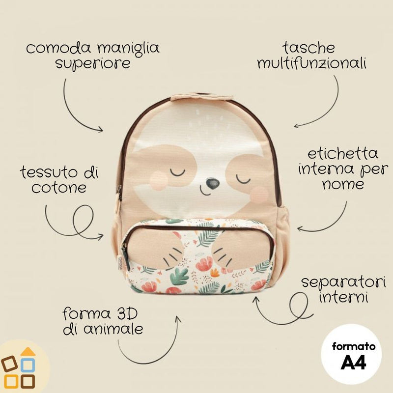 Cerchi uno zaino per l'asilo? Questo zainetto a forma di bradipo è capiente, pratico e adorabile!